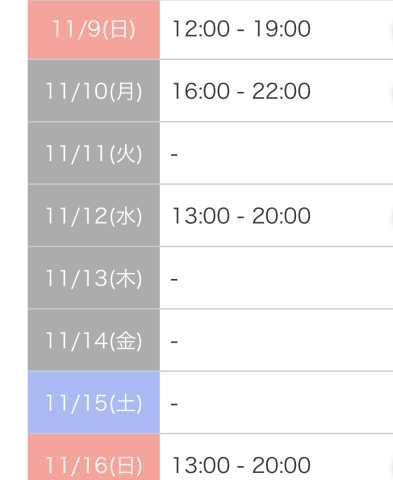 9:00~翌5:00