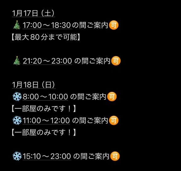 昨日はたくさんのお誘いありがとうございましたそして本日もお部屋争奪戦の中、たくさんのお誘いありがとうございます???次回15:30以降ご案内? ですが、本日もお電話の方ずっと鳴っている状態ですので、お早めのご予約、お問い合わせをお店にてご連絡よろしくお願いいたします???♀?明日以降は、ネット予約・姫予約をお早めにです!!??けい????