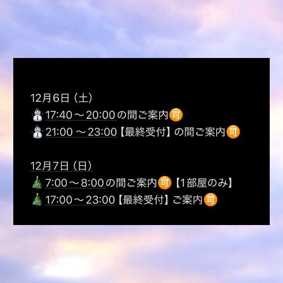 本日土曜日もたくさんのお誘いありがとうございます貴重なお休みの中とても嬉しいです???本日最短17:40以降のご案内?となりますがお部屋の方かなり埋まってきております。夕方は特に混みやすいのでご予約の際はお早めにとご注意ください夜からもいっぱいお兄様と共??存しちゃうくらい甘ト??な時間過ごしたいないっぱい甘えさせてね?けい????