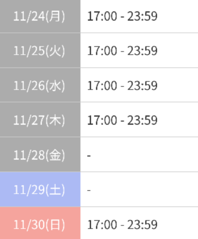 本日出勤 17:00〜翌00:00