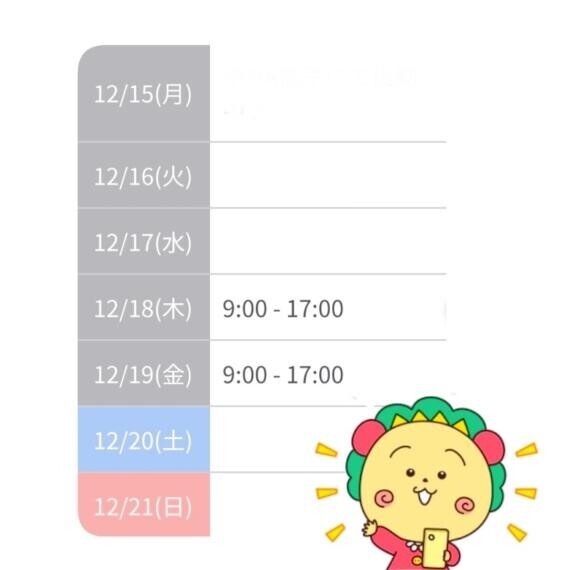 本日出勤 09:00〜17:00