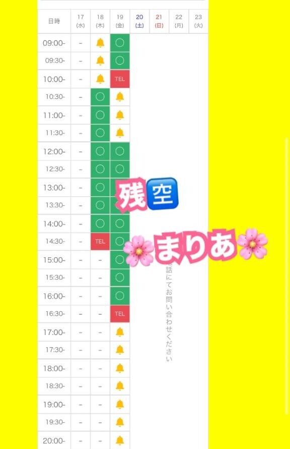 30(火)【2025年まりあシフト最終日】12:30~14:40間 のみ?