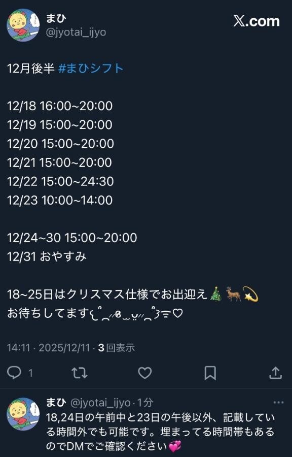 本日出勤 10:00〜14:00