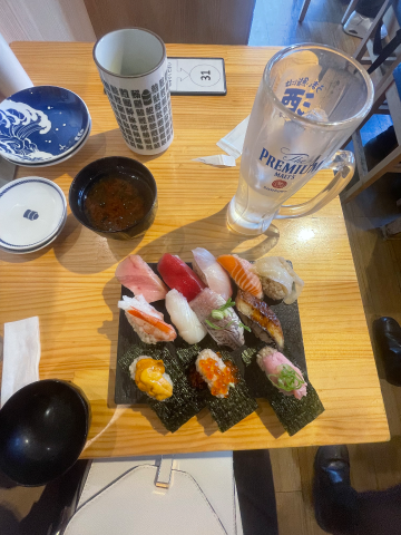 まえがみぱっかーんお昼から贅沢しちゃいました?大好きなハイボールと共に。お寿司と合わせるのは禁忌?日本酒の方がいいのかしら