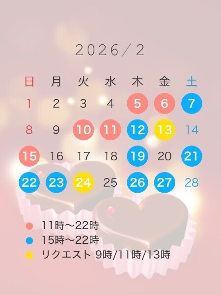 午前希望のお兄様は赤色?黄色?の日付をチェックしてね!リクエストもお待ちしております?