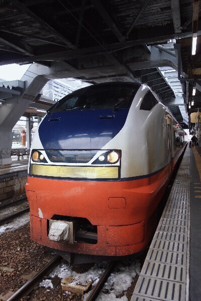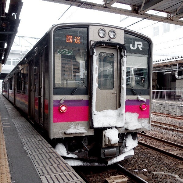 ホームに701系もいて、テンションちょい上がり。雪まとってる車両ってなんであんなにかっこいいの?笑