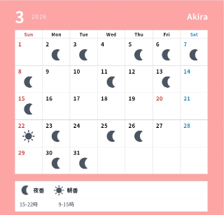本日出勤 15:00〜22:00