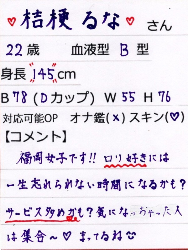 桔梗るな嬢の持つ奥ゆかしさと、愛される理由は出会えば必ずご理解いただけるはず。ぜひこの機会に、彼女だけの特別な世界をご体感くださいませ。