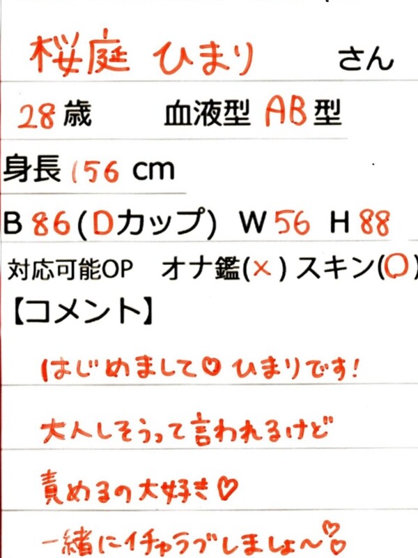 こんにちは(ฅ'ω'ฅ)♪ 先ほど講習を受けてきました!覚えることがたくさんあった…👀!まだまだ至らないことだらですがお兄さんと楽しい時間を過ごせるよう頑張ります‼︎よろしくお願いします🐰桜庭ひまり🌸