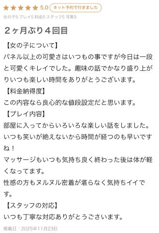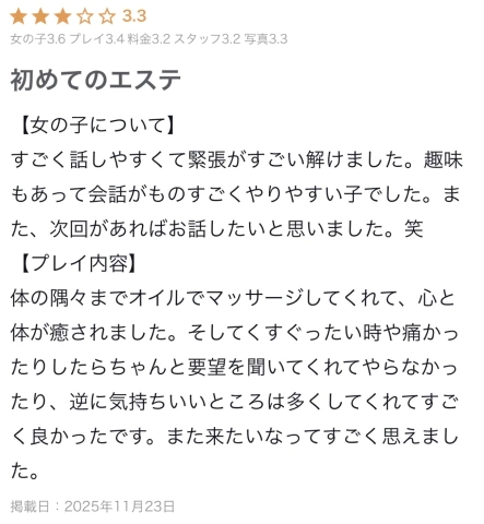 ヌルヌル密着も今回も気持ちよく受けてもらえてよかった…✨