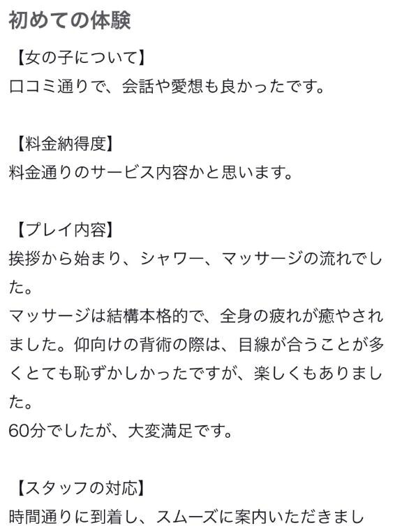 水島れいなです🐬🫧口コミありがとう✨️れいなのことを選んでいただいて、それに恥じないようなコメントをいただけて嬉しい🥰普通のマッサージにも力を入れているのでマッサージが本格的と言っていただけて何よりだな😽恥ずかしがり屋さんだったけど楽しんでいただけたようで良かったなー!!60分で満足していただけるのって少し難しいと思っていたから満足していただけて嬉しい😆✨🎶また遊びに来てね♡