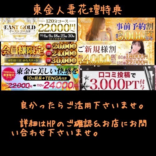 💡本日10/20日は【会員様特典】【ご新規割引】【事前予約特典】【口コミ投稿特典】【東金限定プラン】を良かったらご活用下さいませ。