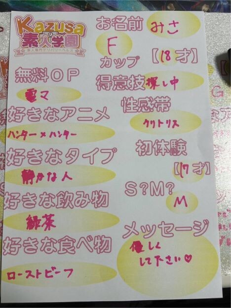 ディープキス, 指入れ, 素股, 全身リップ, 生フェラ, 玉舐め, 69, 口内発射, パンティー持ち帰り, アイマスク, ローター, バイブ, 電マ, 手コキ, マッサージ, パイズリ, 即尺, 聖水, 乳首舐め