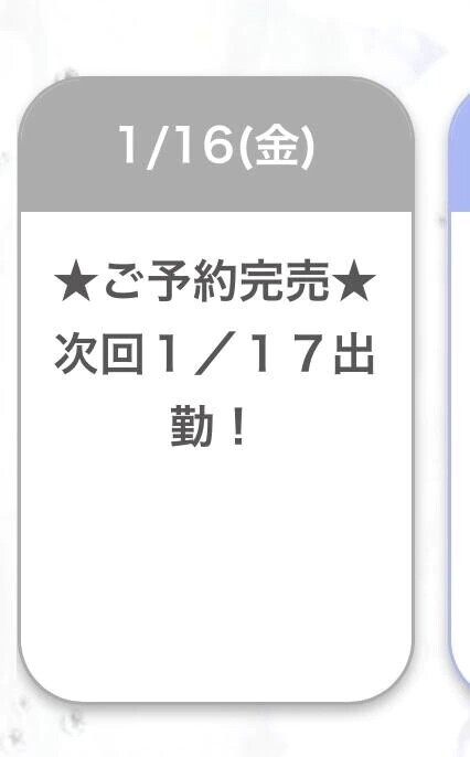次回の今週の出勤は15日、16日、17日!