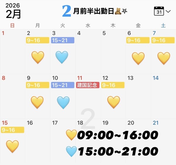 2月のシフト遅くなりすみません💦