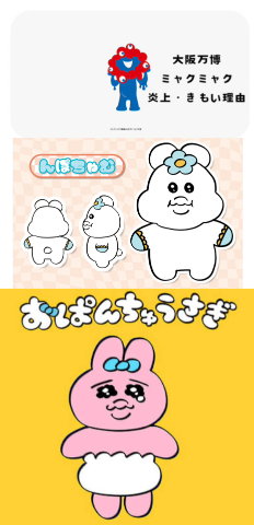 ミャクミャクやおぱんちゅうさぎ…