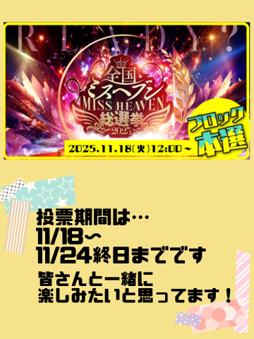 前回の『ミスヘブン総選挙2025地方予選投票』では、たくさんの皆さまからたくさんの温かい1票をいただきました結果…見事、この度、、