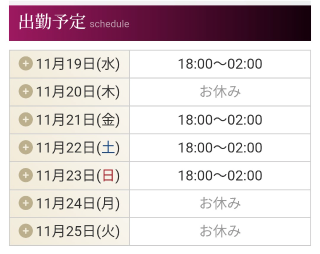 3.オフィシャルホームページはリアルタイム出勤表だから一週間分の予約状況がまる見え。