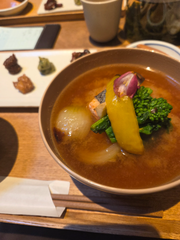 佐野みそ本店の味噌汁ご飯セットと船橋屋のお汁粉セット