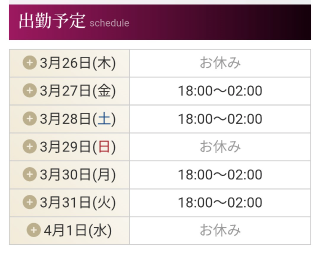 3.オフィシャルホームページはリアルタイム出勤表だから一週間分の予約状況がまる見え。