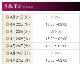 3.オフィシャルホームページはリアルタイム出勤表だから一週間分の予約状況がまる見え。