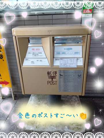 少し歩くと右側に金色のポストを発見??
