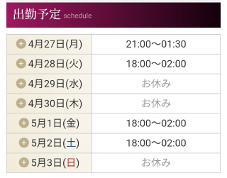 3.オフィシャルホームページはリアルタイム出勤表だから一週間分の予約状況がまる見え。