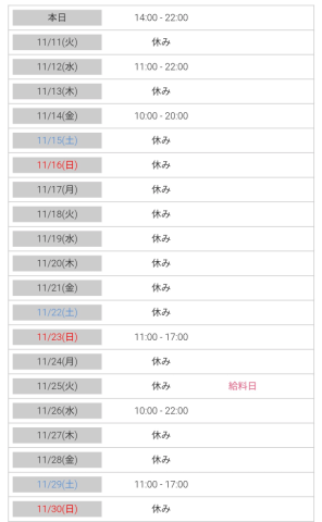 本日出勤 10:30〜20:00