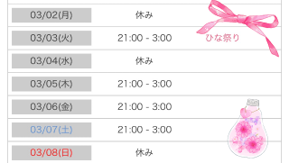 本日出勤 21:00〜翌03:00