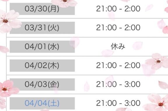 本日出勤 21:00〜翌03:00