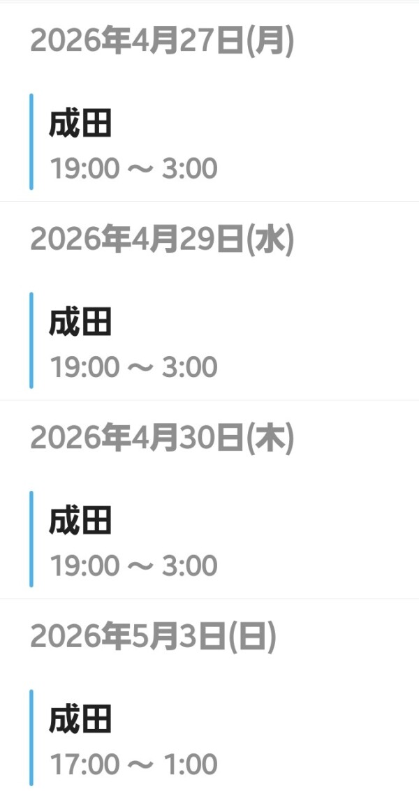 本日出勤 19:00〜翌03:00