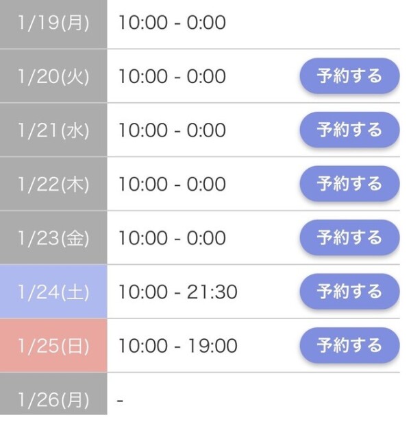 本日出勤 10:00〜翌00:00