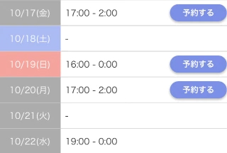 本日出勤 17:00〜翌02:00