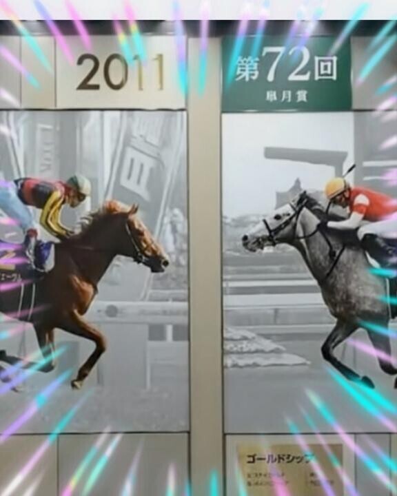 お馬の写メ日記を見て、お誘いくださり本当にありがとうございます(ӦvӦ。)年下君なのに競馬歴が長くて詳しいので、次回も、もっと色々教えて欲しいです飲み物の差し入れもご馳走様でした再会を楽しみにしています(ӦvӦ。)画像は中山競馬場の通路のパネルですが、ゴルシちゃんとオルフェが向かい合わせなのが感動的です(ӦvӦ。)