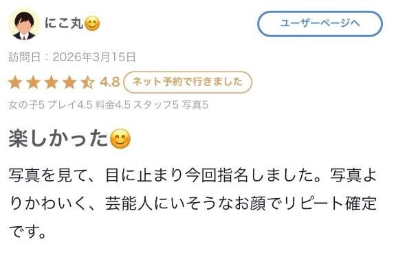 [ ルックス 5 / プレイ内容 5 / トーク 5 / サービス 5 ]