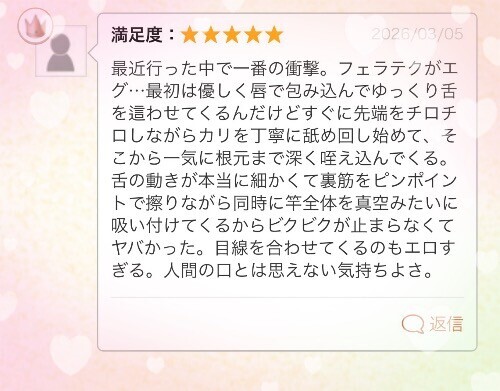 良い娘(口コミ)にて有難きメッセージコメント