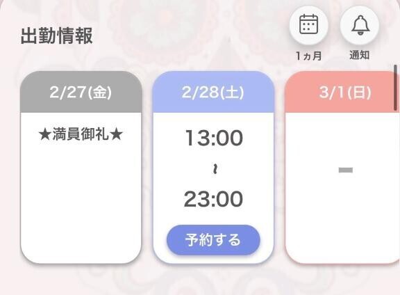 13:00~23:00出勤します??予約欄空いてます??♀??脳イキ脳バグ大量潮吹き・ハードSMはゆったりしたお時間でご予約お願いします??電話、ネット、姫予約、お待ちしております????????