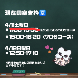 次回の空き枠は来週の土日が空いております♪