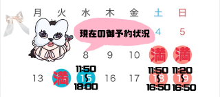来週水曜日以降まだ御予約に空きがございます?