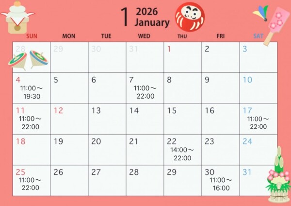 1月の出勤はこちらになります!