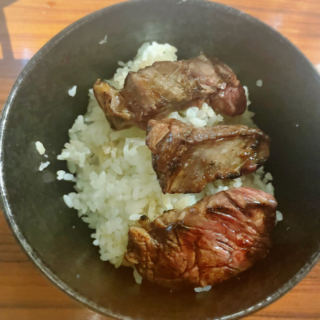 ハラミ丼(ライス大盛り)にして食べてたの