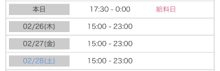 本日出勤 17:30〜翌00:00