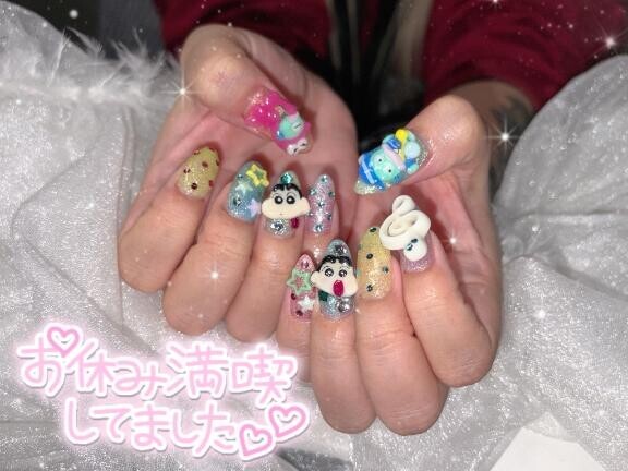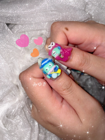 先日ネイルチェンジしてきた??今月は誕生月っていうことでやりたかったネイル?みゆきの好きなキャラクターを詰め込んだネイルだよ??これ、ネイリストさんの手作りなんじゃけど上手すぎるし可愛すぎる~~?ずっと爪見ちゃう???テンションアゲアゲで今日出勤です( *´?`* )
