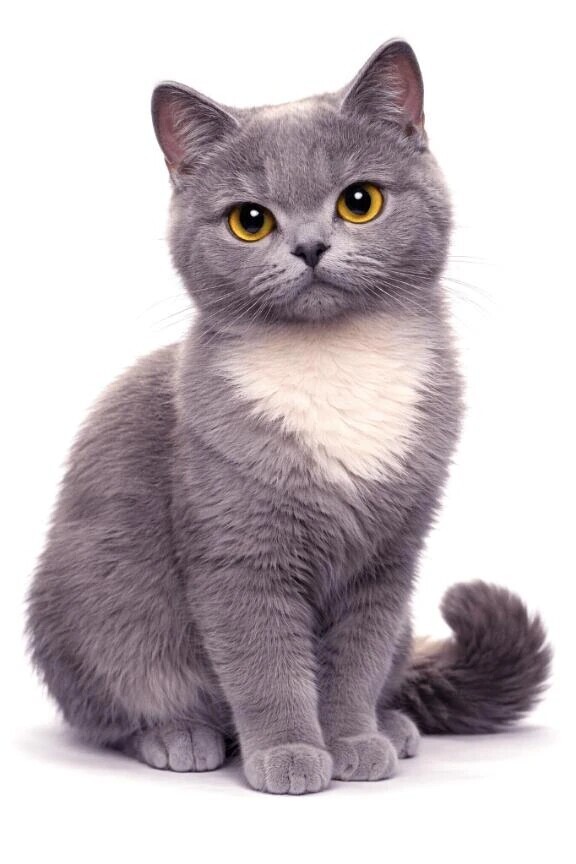どこから胸の白毛きたんだ……ブリティッシュショートヘアとロシアンブルーの中間みたいな猫だぞ
