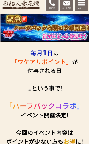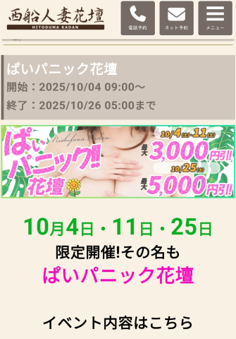 自己申告制&他の割引との併用は出来ませんがぜひ西船人妻花壇へ遊びにきてください