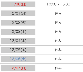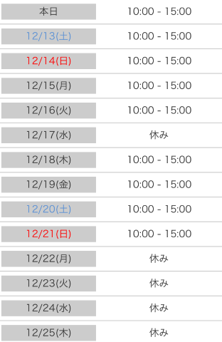 本日出勤 10:00〜15:00