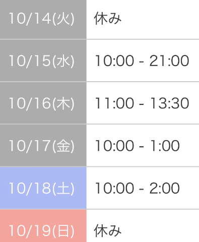 本日出勤 11:00〜13:30