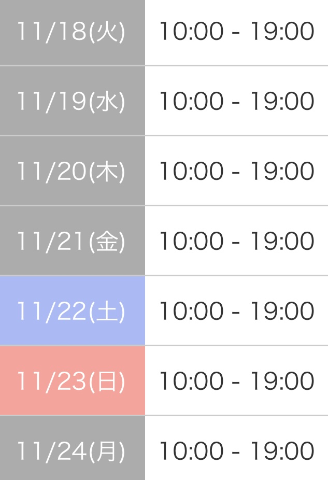 本日出勤 10:00〜21:00