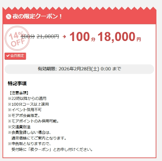 こんばんは夜はクーポンありますお誘い、お問い合わせお待ちしております