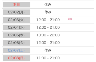 9:00~翌5:00